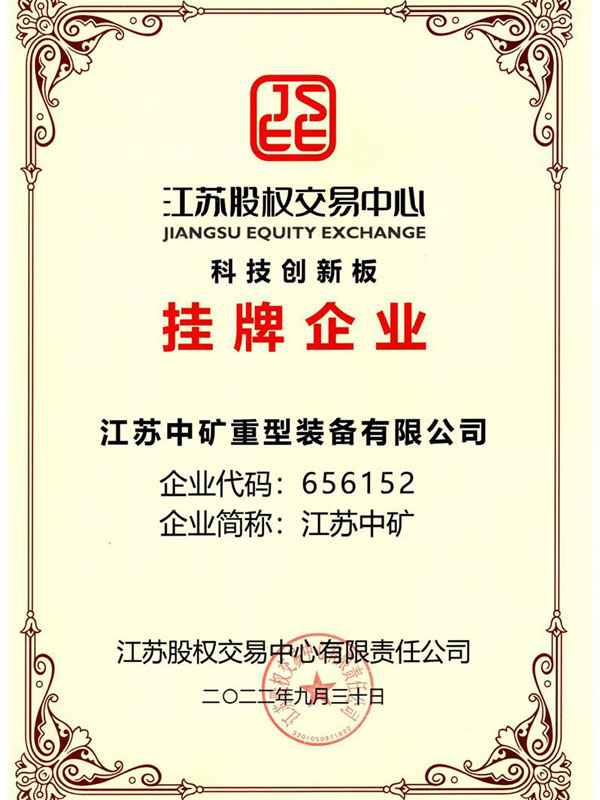 近日,江蘇中礦重型裝備有限公司(企業代碼:656152)成功掛牌江蘇股權交易中心科技創新板。企業將通過平臺的孵化和培育,向廣大投資者全面充分地展現自身優勢和亮點,實現企業品牌增值,并構建企業規范現代化管理。