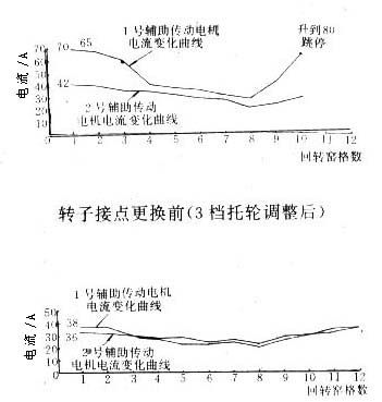 (4)主傳動2號主電機,已多次發生過碳刷整排燒壞事故。主要原因是整流子磨損嚴重,換向困難,造成幾何中心線偏移,電流分布不均衡,電機帶病運行。