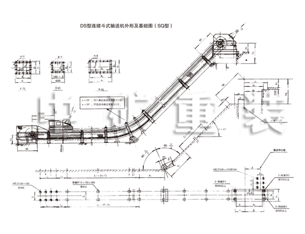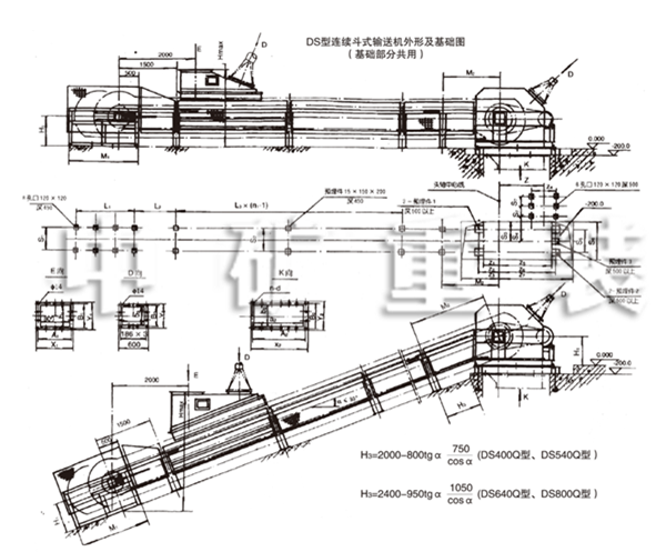 DS型連續式斗式輸送機外形及基礎圖(SQ型)