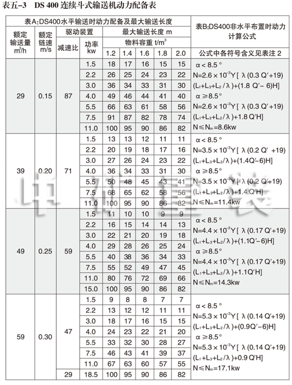 DS型連續斗式輸送機輸送鏈為套筒滾子鏈,連續斗式結構,用于高溫熟料的水平、大傾角(可達60度)輸送;輸送帶是由牽引鏈、承載鏈和正向搭接(或反向搭接)的料斗組成,三部分可自由裝卸;牽引鏈與承載鏈分開,使結構簡化,成本降低,且使用壽命長,安裝維修方便;承載鏈中的行走輪為承重件,以滾動摩擦代替以往采用的滑動摩擦,運行阻力降低55%-65%,降低了輸送機的牽引力和功率消耗;承載體系料斗結構,比鋼板(鱗板)糟體結構更 有剛性強、承載量大,安裝維修方便等特點;裝料和卸料部分設有密封和除塵口,改善了裝卸料的工作環境;布置靈活;耐高溫。可輸送溫度<600c的物料;傾角大。傾角可達60度。