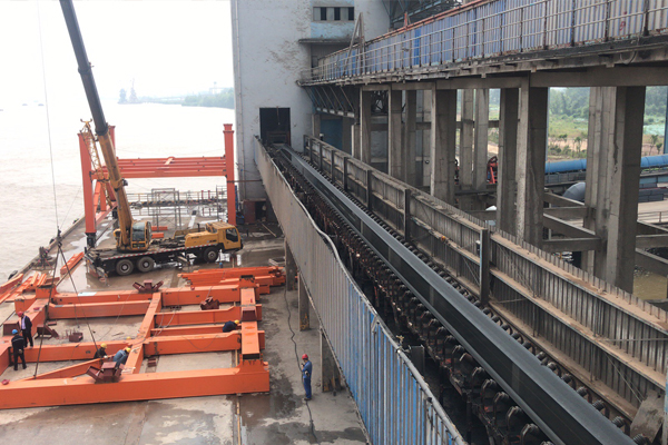 我公司于2019年1月與江蘇船港物流有限公司簽訂港口干散貨卸料物流中轉項目設備一批,2019年4月15日我公司安裝人員已正式進入現(xiàn)場進行安裝,為保證業(yè)主單位的生產(chǎn)進度及港口卸船機與帶式輸送機的協(xié)同生產(chǎn),我公司安裝人員在現(xiàn)場加班加點,目前現(xiàn)場已初具規(guī)模。